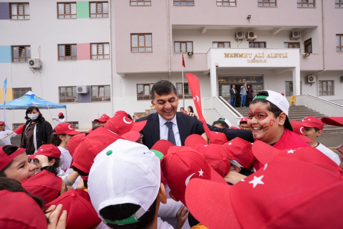 Kırsal mahallelerde tamamlanan etkinliklerin ardından, 23 Nisan Ulusal Egemenlik ve Çocuk Bayramı etkinlikleri çerçevesinde ilçe merkezine Mehmet Ali Alevli İlkokulu’nda gerçekleştirilen etkinlikte öğrencileri yalnız bırakmayan Şehitkamil Belediye Başkanı Rıdvan Fadıloğlu, geleneksel çocuk oyunları esnasında öğrencilere eşlik ederken, çeşitli armağanlarla onları mutlu etti.