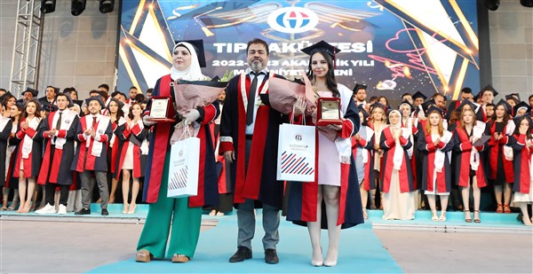 Fakülte birincisi Dr. Reyhan Ay konuşmasında şunları söyledi: "Beni bugünlere getiren aileme öncelikle teşekkür etmek ister, onlara layık bir evlat, vefalı bir hekim ve insan olacağıma hepinizin önünde söz vermek istiyorum. Gazi Mustafa Kemal Atatürk’ün emaneti olan Cumhuriyeti korumak ve Türk hekimlerine olan inancını yaşatmak asli görevimiz ve sorumluluğumuzdur.”