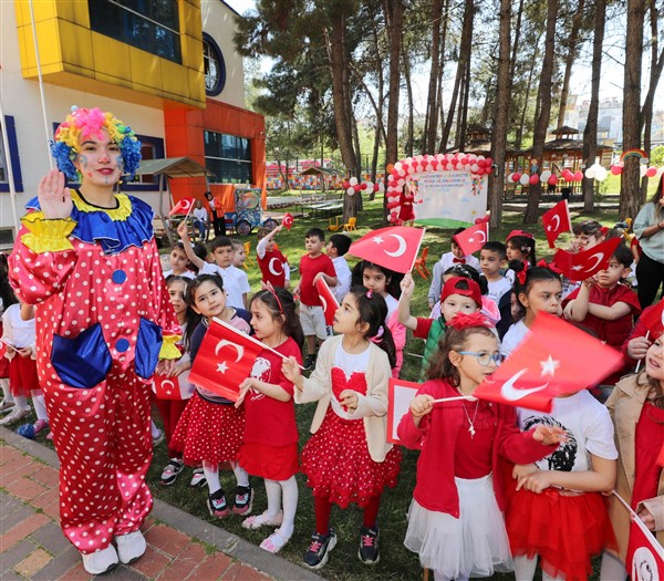 Etkinlikler kapsamında dans edip şarkılar söyleyen öğrenciler palyaço gösterisiyle doyasıya eğlendi. Bayraklar, renkli balonlar ve çeşitli süslemelerle donatılan bahçede öğrenciler ve öğretmenler, 23 Nisan şiirleri okuyarak, dans gösterileri sergileyerek müzik eşliğinde oyunlar oynadı.