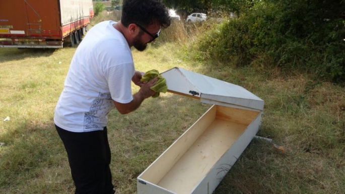 Pendik’te bir organizasyon şirketinde çalışan Yücel Korkmaz, tiyatro oyunlarında kullandıkları tabutu internet sitesi üzerinden satışa çıkardı. 'Sahibinden satılık az kullanılmış tabut’ ilanını gören vatandaşlar şaşkınlıklarını gizlemeyerek ilan sahibine mesaj attı. Kimileri ilan sahibi Korkmaz ile fiyat pazarlığına girdi, bazıları ise 'Bize ölümü hatırlattın' mesajları attı. Sahibinden az kullanılmış tabutu daha önce 350 TL’ye satışa çıkaran Yücel Korkmaz, ilanını daha sonra güncelleyerek fiyatı bin 500 TL’ye çıkardı. Korkmaz, yaptığı açıklamada, “İlanı sosyal medyaya koydum, 350 TL fiyat ile. Bir arkadaş da bana yazdı ‘250 TL olur mu?’ dedi. Ben de ‘Sana bedava olsun ne yapacaksın?’ diye sordum, bana gülücük mesajı attı.