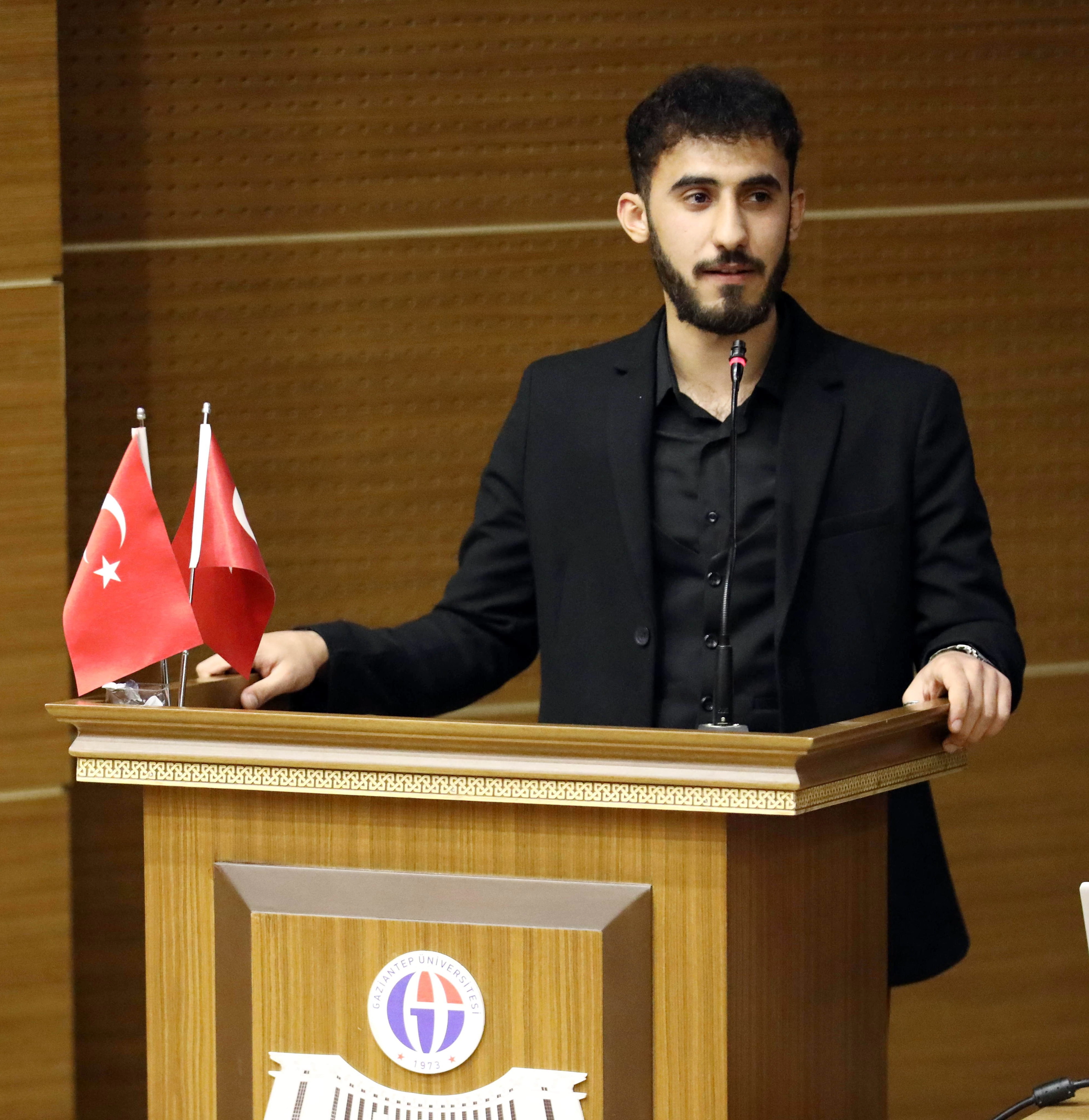 GAÜN Hukuk Fakültesi öğrencisi Buhari Manaf, teknolojinin toplum üzerine etkilerine dikkat çektiği konuşmasında, dinlenilen müziklerin bile insanlar üzerinde çok önemli etkileri olduğunu söyledi. Manaf, bireysel ve toplumsal çevremizde gelişen sorunlara karşı önce bir insan sonra da bir Müslüman olarak sessiz kalınmaması gerektiğini sözlerine ekledi.