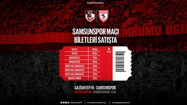 Gaziantep Stadyumu'nda oynanacak olan karşılaşmanın bilet fiyatları 250 ile 1000 TL arasında belirlendi. Taraftarlarımız passolig kartlarına www.passo.com.tr adresinden ve Demokrasi Meydanı yanında bulunan Gaziantep FK Passolig noktasından bilet dolumu yapabileceklerdir.