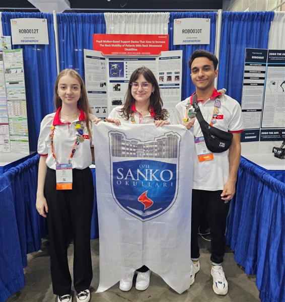 ABD’de düzenlenen ve 64 ülkeden bin 343 proje ile katıldığı yarışmada; SANKO Okulları öğrencilerinden Mustafa Ali Şahin, Beyza Nur Ocak ve Naz Fındık, proje danışman öğretmenleri Neriman Ersönmez rehberliğinde hazırladıkları, Robotics and Intelligent Machines alanında “Boyun Hareket Engeli Olan Hastaların Boyun Hareketliliğini Artırmayı Amaçlayan Gözbebeği Hareketi Temelli Destek Aparatı” (Pupil Motion-Based Support Device That Aims To Increase The Neck Mobility of Patients With Neck Movement Disabilities) projesiyle Türkiye’yi temsil etti.