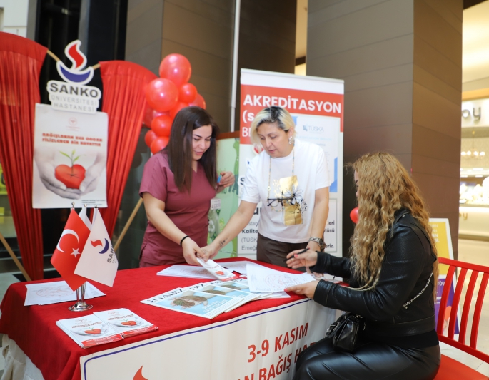 SANKO Üniversitesi Hastanesi tarafından Organ Bağış Haftası etkinlikleri kapsamında SANKO Park AVM’de açılan stant yoğun ilgi gördü. Stantta bilgilendirme yapılırken, organ bağışı yapmak isteyenlerden de bağışlar alındı.