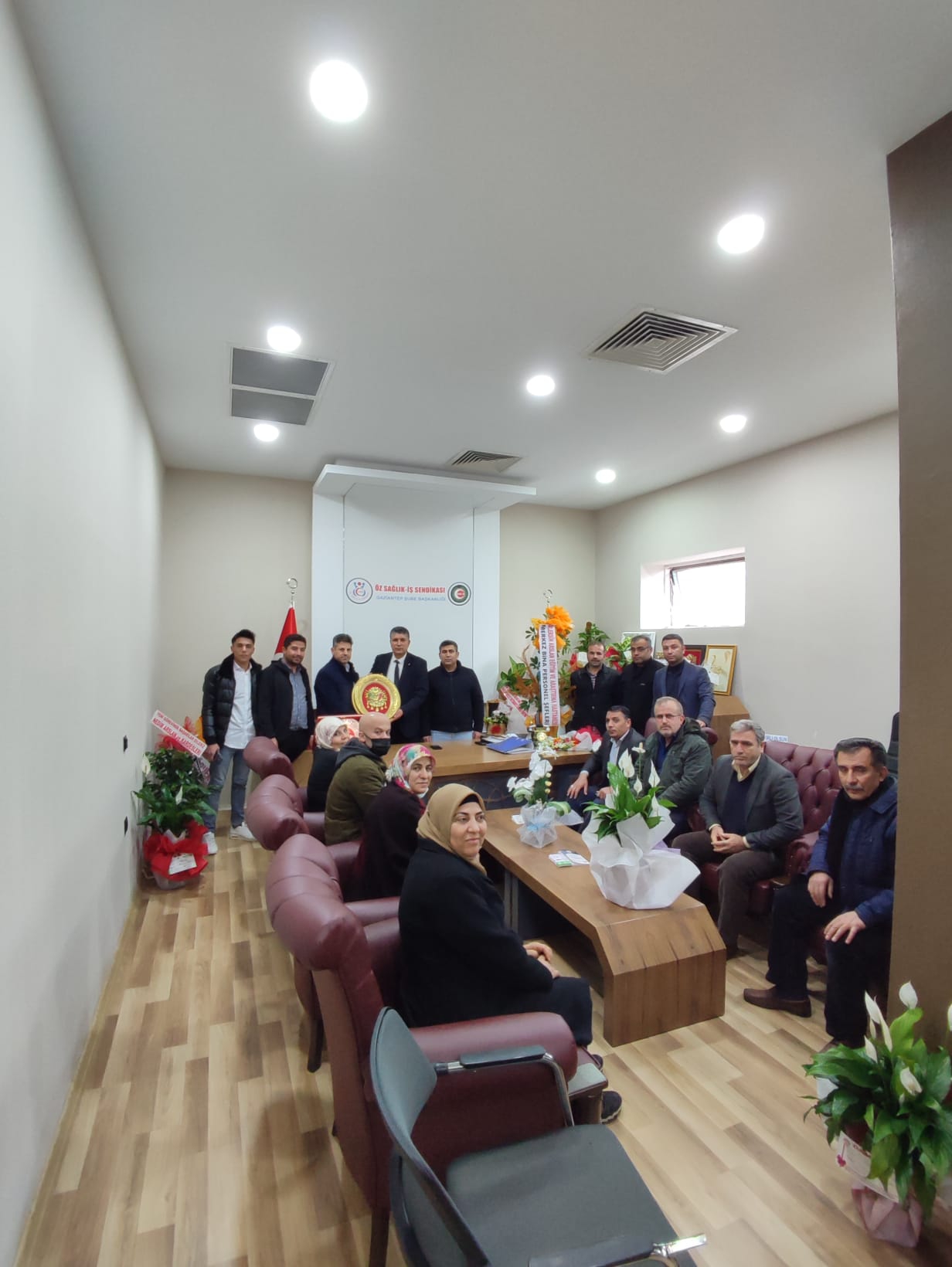 Öz Sağlık İş Sendikası Abdülkadir Yüksel Devlet Hastanesi baş temsilcisi Mehmet Yılmaz temsilciler üyeler ve beraberindeki heyet ile birlikte Öz Sağlık İş Sendikası Gaziantep Şube Başkanı Mehmet Görgel'e hayırlı olsun ziyaretinde karşılıklı görüş alış verişinde bulundular.